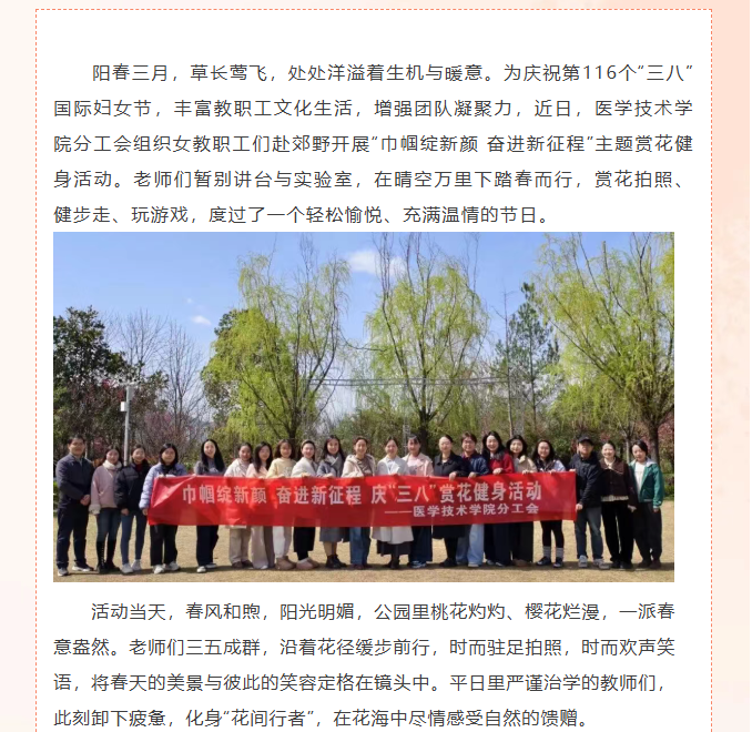 巾帼绽新颜 奋进新征程——医学技术学院分工会开展庆“三八”赏花健身活动