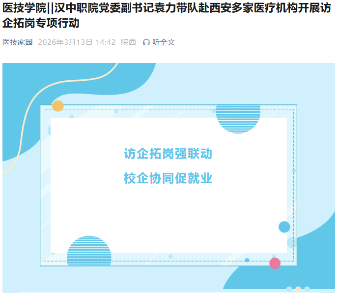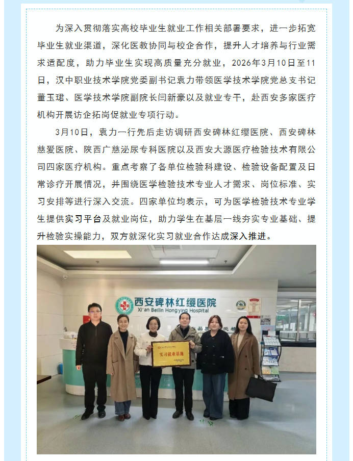 医技学院||汉中职院党委副书记袁力带队赴西安多家医疗机构开展访企拓岗专项行动